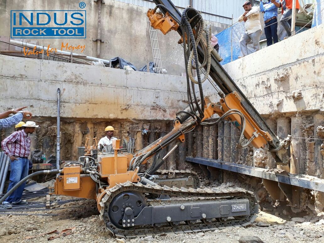 - IRB 200 is Track Mounted, Self Contained Pueumatically Operated Drilling Rig. This drill comes in two different models DTH & Top Hammer. DTH comes with powerful rotation system suitable to drill holes (89 mm to 130 mm) Top Hammer drill comes with high speed drifter with independent rotation system suitable to drill holes of 2" - 3 1/2" (48-89 mm) with IPD120 Drifter and IPD 140 Drifter. This drill is capable of high manoeuvrability and exceptional operational ease on any site to assure you a total drilling capability. Thus this machine is best and economical solution in this calss. Heavy structure will give stability with high pressure compressor.